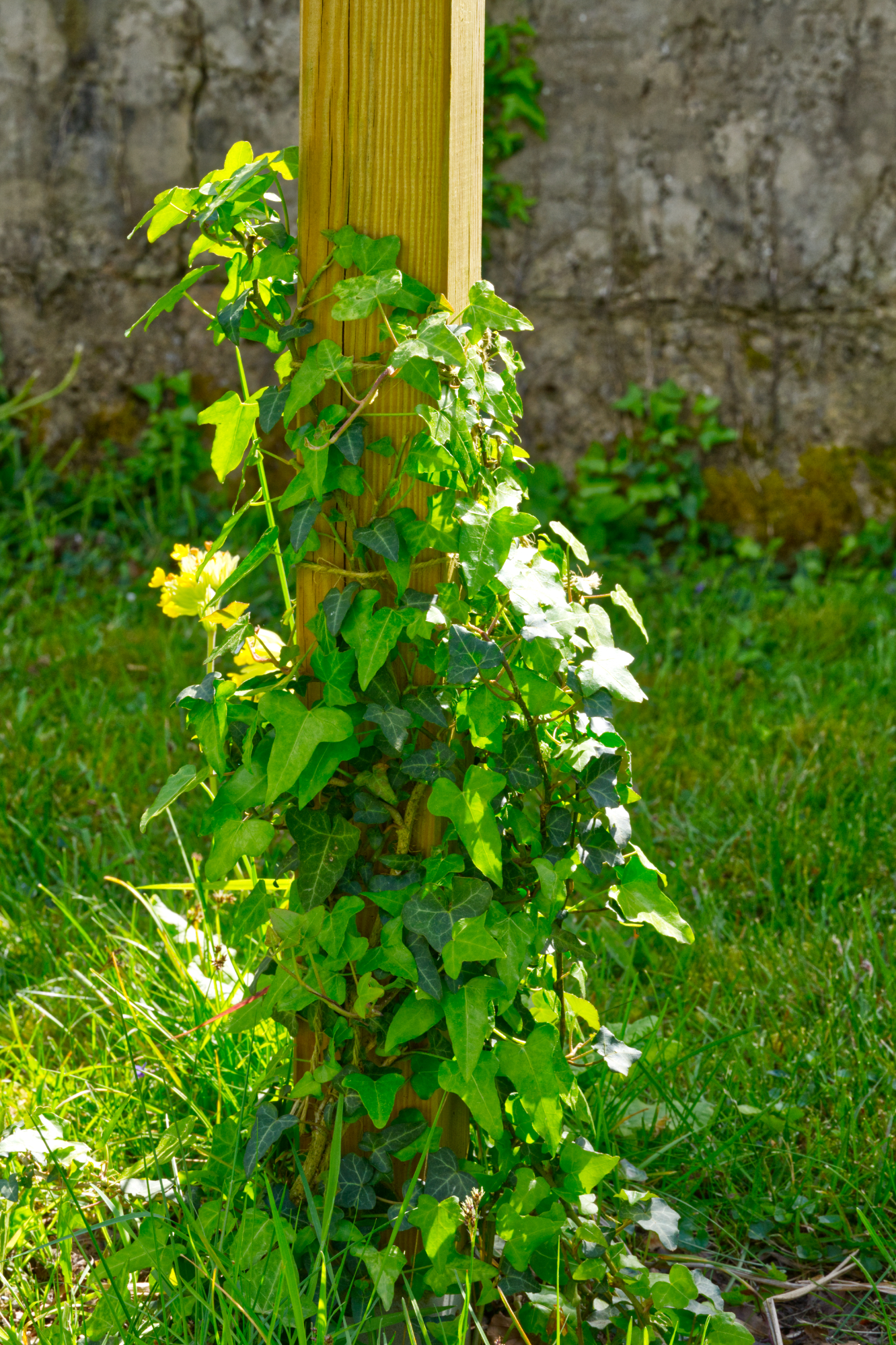 Pour éviter que le lierre envahisse les murs, on peut l'implanter au pied d'un support à un endroit choisi dans le jardin. Après trois ou quatre ans il produira des fleurs et des baies respectivement appréciées des abeilles en automne et des oiseaux en hiver.